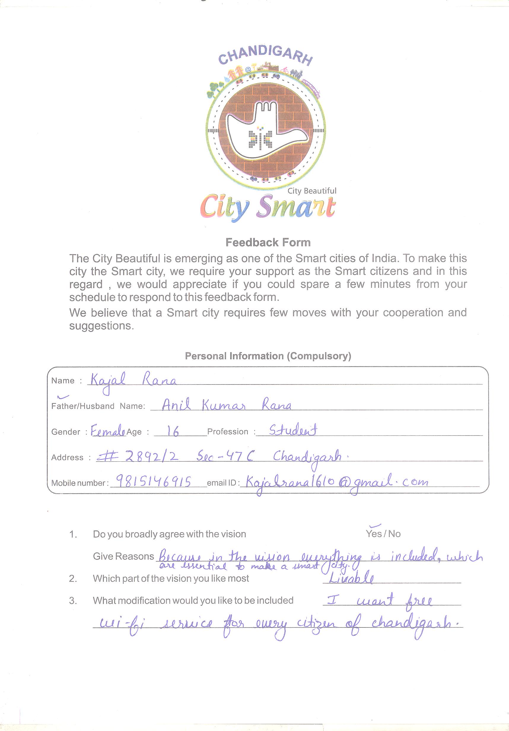 feedback received from:-Kajal Rana