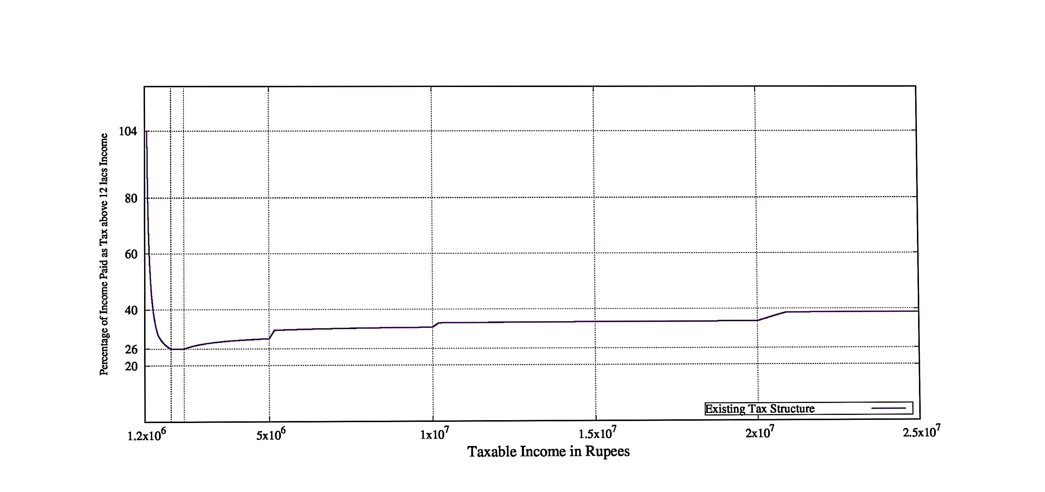 Percentage of income paid as tax above 12L income.