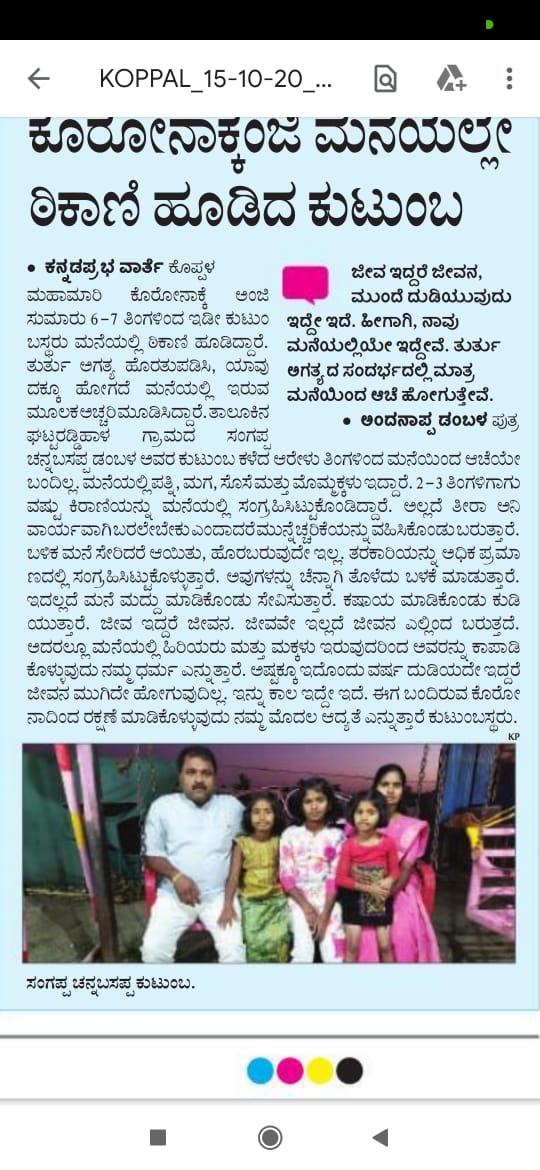 please consider my comment regarding self quarantine family in Gattiraddihal. kopaal dist, karnataka. mr. Andanappa dambal and his family( parents wife & childrens ) are self quarantined since when first lockdown was announced and still they are following the same and maintaining social distance and all the govt.rules. we mush follow this quarantine concept which is followed by mr. Andanappa dambal. to prevent the more incidence of covid 19. and he should be our role model.