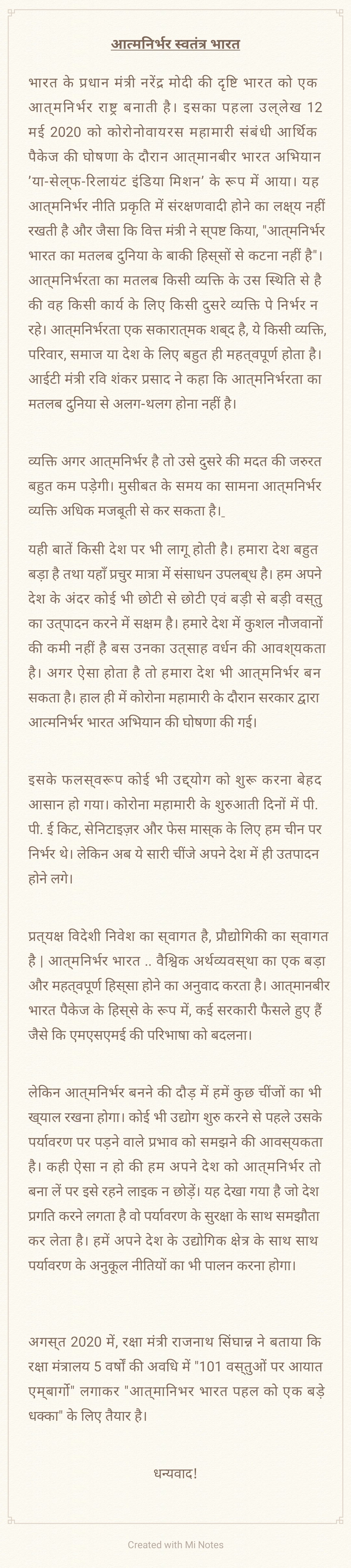 I am Preety Sarma. Hereby I submit my essay on Atmanirbhar Bharat.