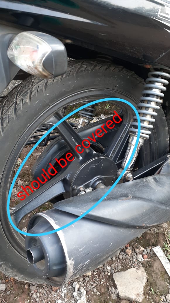 இரண்டு சக்கர வாகனங்களில பின்னால் அமரும்போது துணிகள் குழந்தைகளின் கால்கள் சிக்குகின்றன். மனநிலை பாதிக்கப்பட்ட குழந்தையை பின்னால் வைத்துச் செல்லும்போது கால்கள் சிக்கியது. மடியில்எதையாவமு கையில பிடிக்கும்போது ஆடைகளில்கவனம் செலுத்த முடியாது் எல்லோருக்கும்தனிமனித எச்சரிக்கை உணர்வும் இருக்காது். ஆகவே புதியதாய் தயாரிக்கும்போது பாதுகாப்பு கவரும் ஏற்கனவே விற்கப்பட்ட வாகனங்களிலும் கவர் பொருத்தும்படிக்கும் சக்கரக்காப்பு வரணும். 2வந்து குழந்தையின் விரல்கள் சைககிள் செயினில் சிக்கியது. I rescued