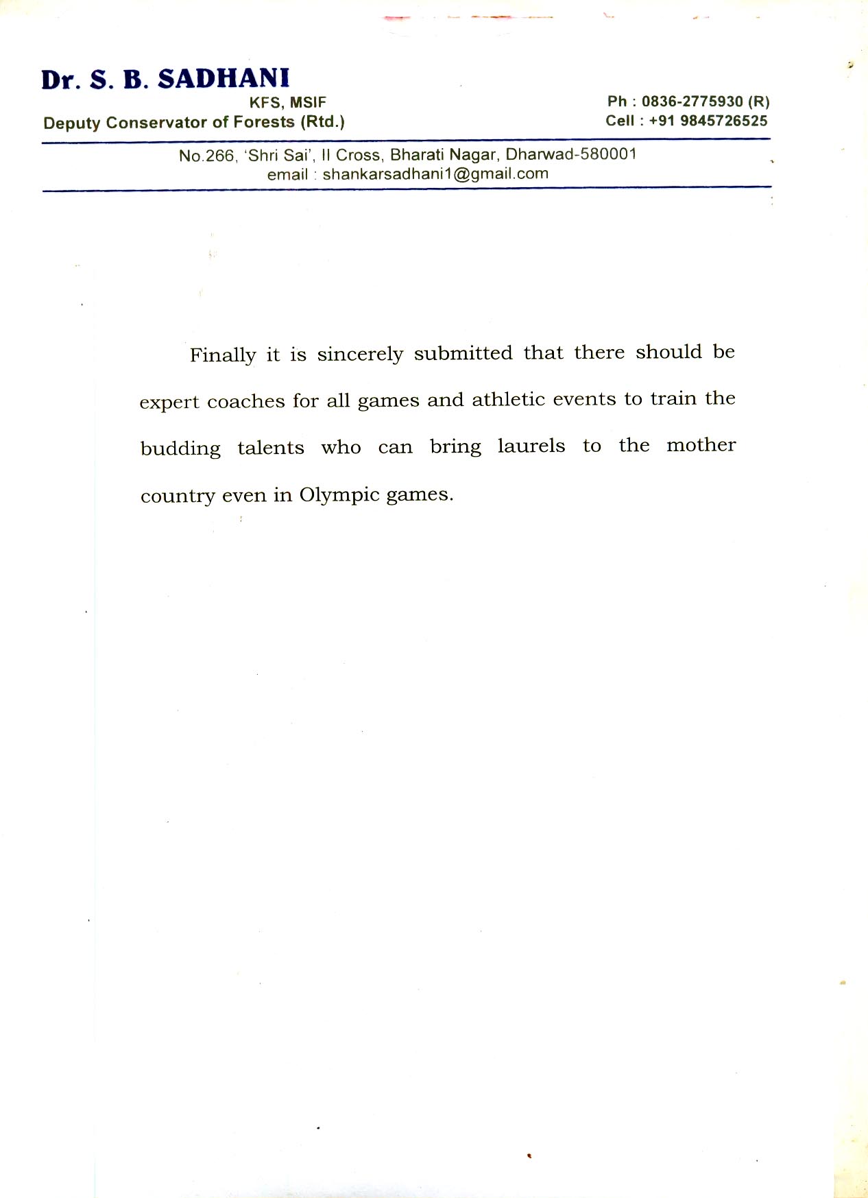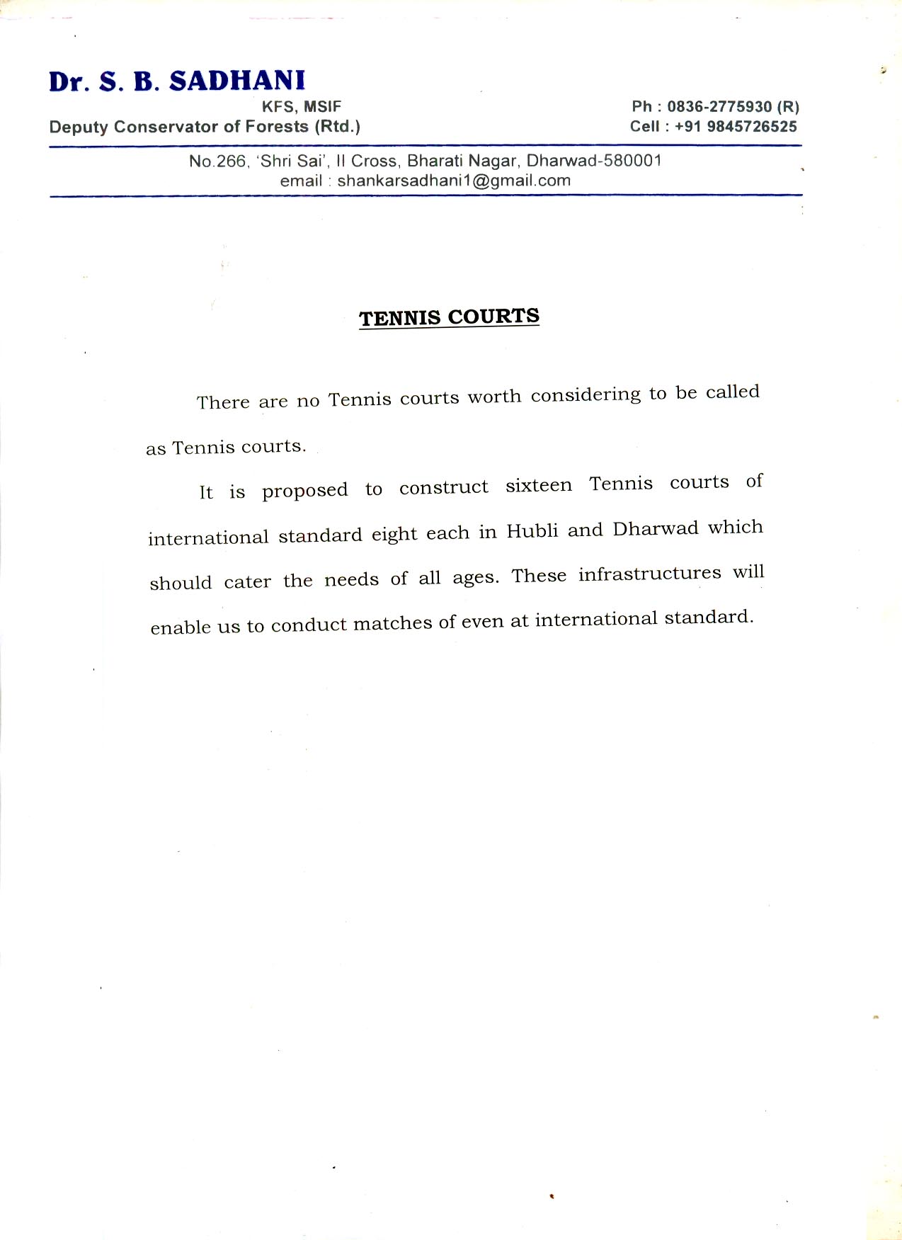 I am Enclosing herewith my views about Hubli-Dharwad Smart city in 8 pages which may kindly be per viewed Dr. S. B. Sadhani Deputy Conservator of Forest (Rtd). Mobile No 98457265255