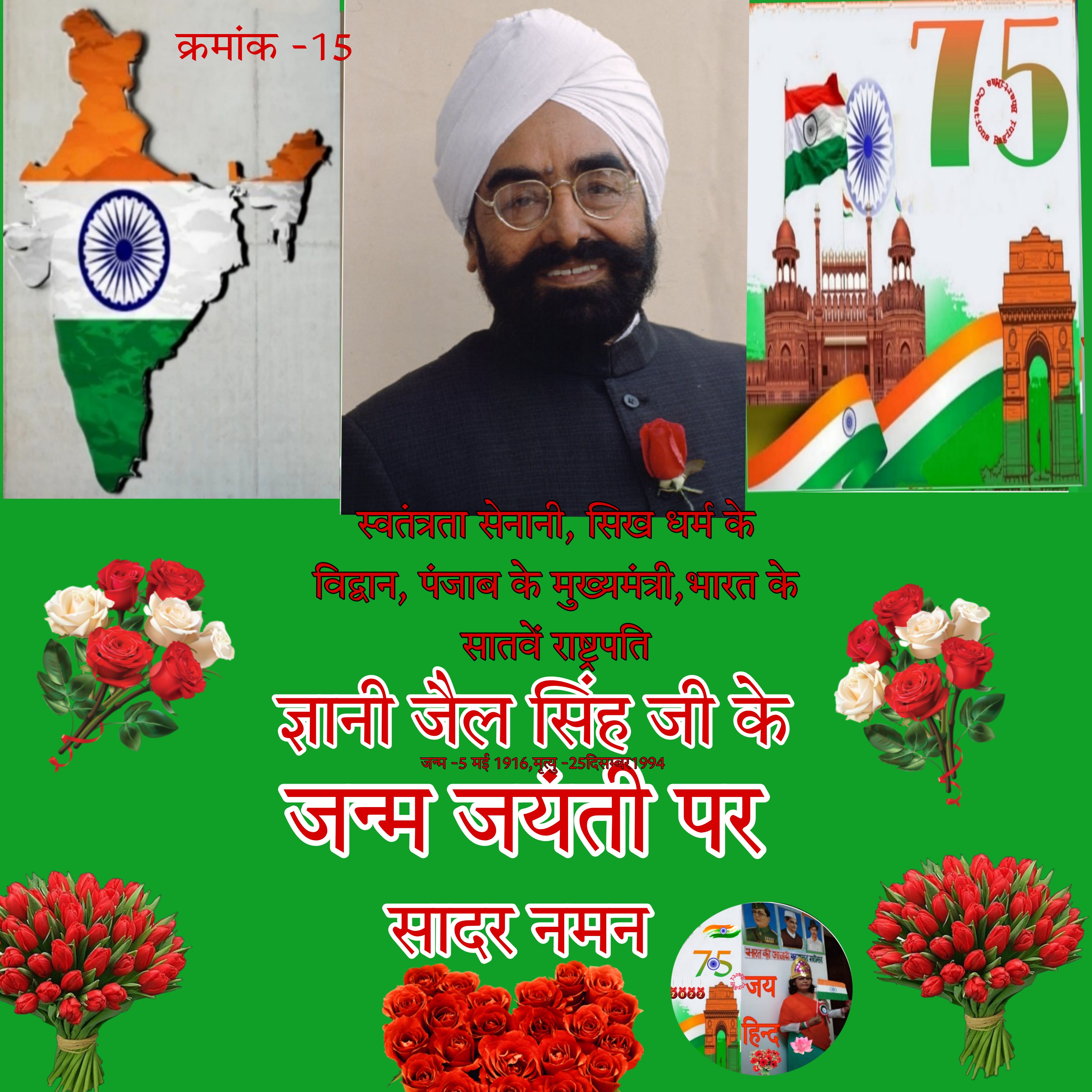 महान स्वतंत्रता सेनानी, महान क्रांतिकारी राष्ट्र भक्त केसरी नन्दन जी,भारत के राष्ट्रपति ज्ञानी जैल सिंह के जन्म जयंती पर शत शत नमन।