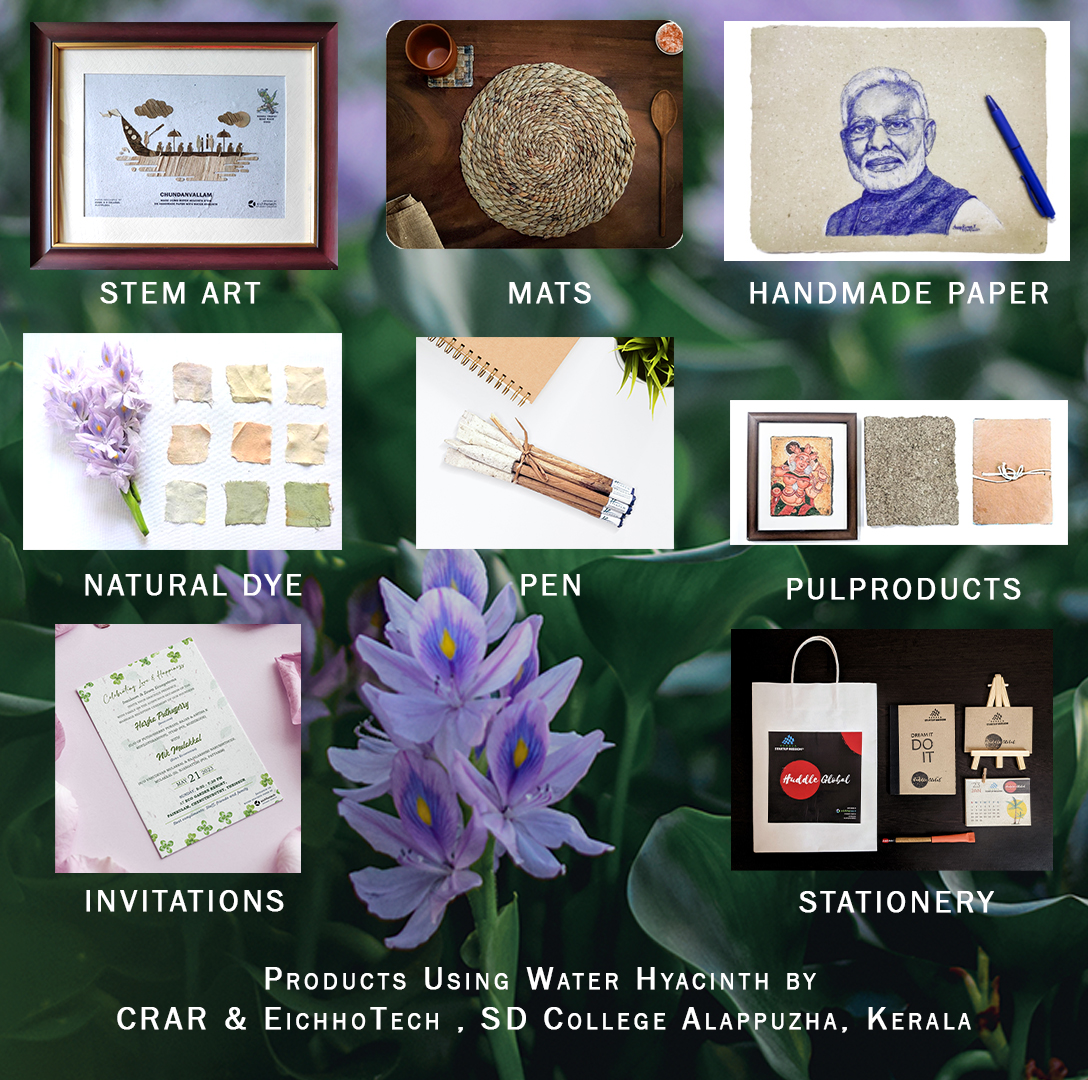 Water hyacinth cannot be eradicated completely. But partial eradication is possible through utilisation. This can be achieved through rural technologies to make pulp products, handmade paper, notebooks, lampshades, manure, briquette (fuel) and other eco-friendly products. They could be exported too. 97% of the waterbodies are in the rural areas as per the census of Ministry of Jal Shakti. Thus, our waterbodies will become clean and alternate livelihood & additional income will be generated in the rural areas supporting Vocal for Local, Atmanirbhar Bharat, Make in India, Circular Economy and Nature-based Solutions.