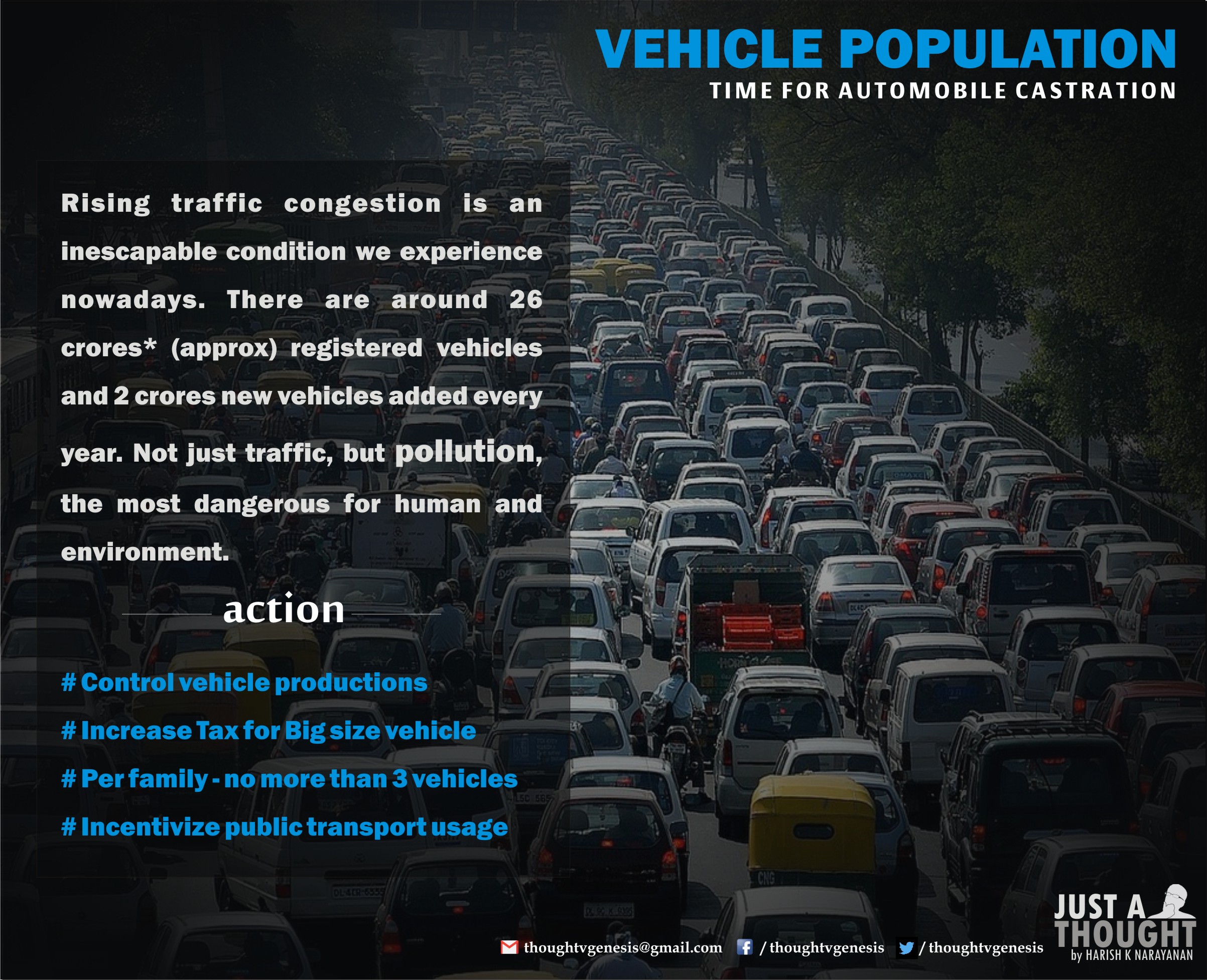 Dear Sir, Vehicle Population has to be curbed down immediately, to save the environment, traffic and congestion. Thanks