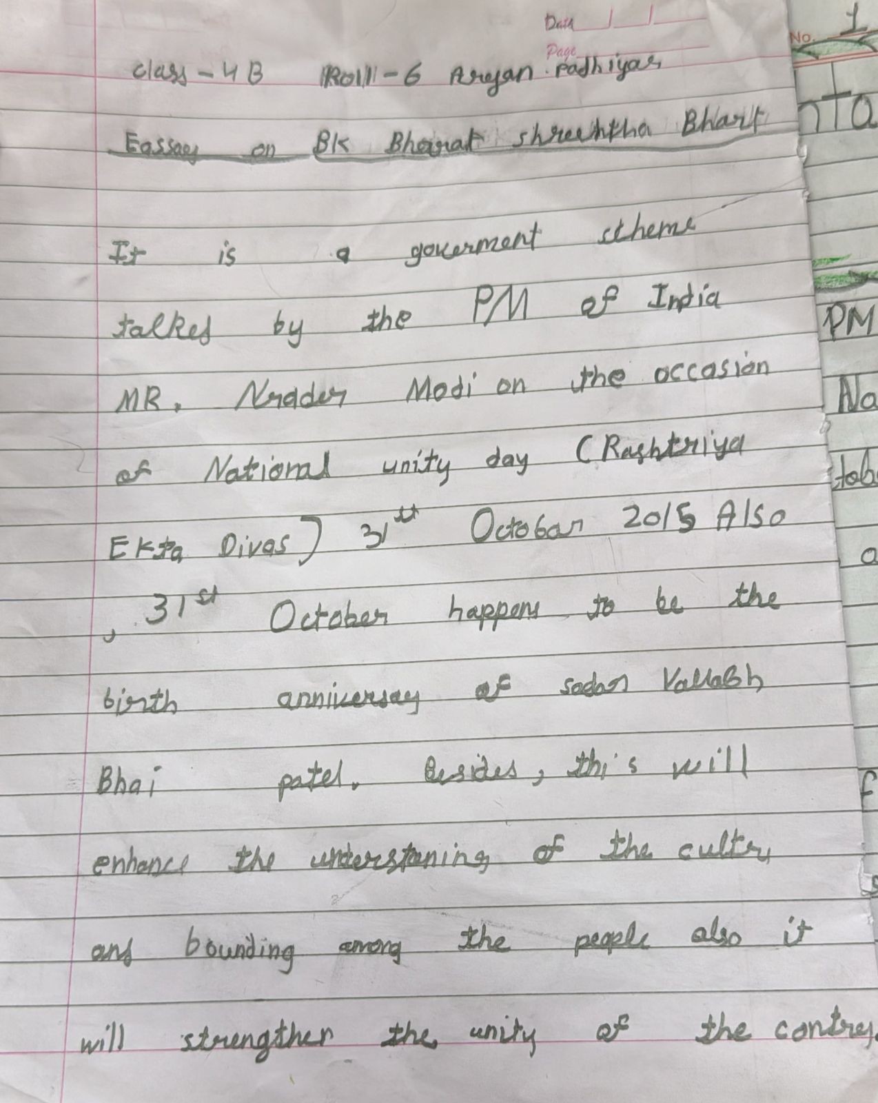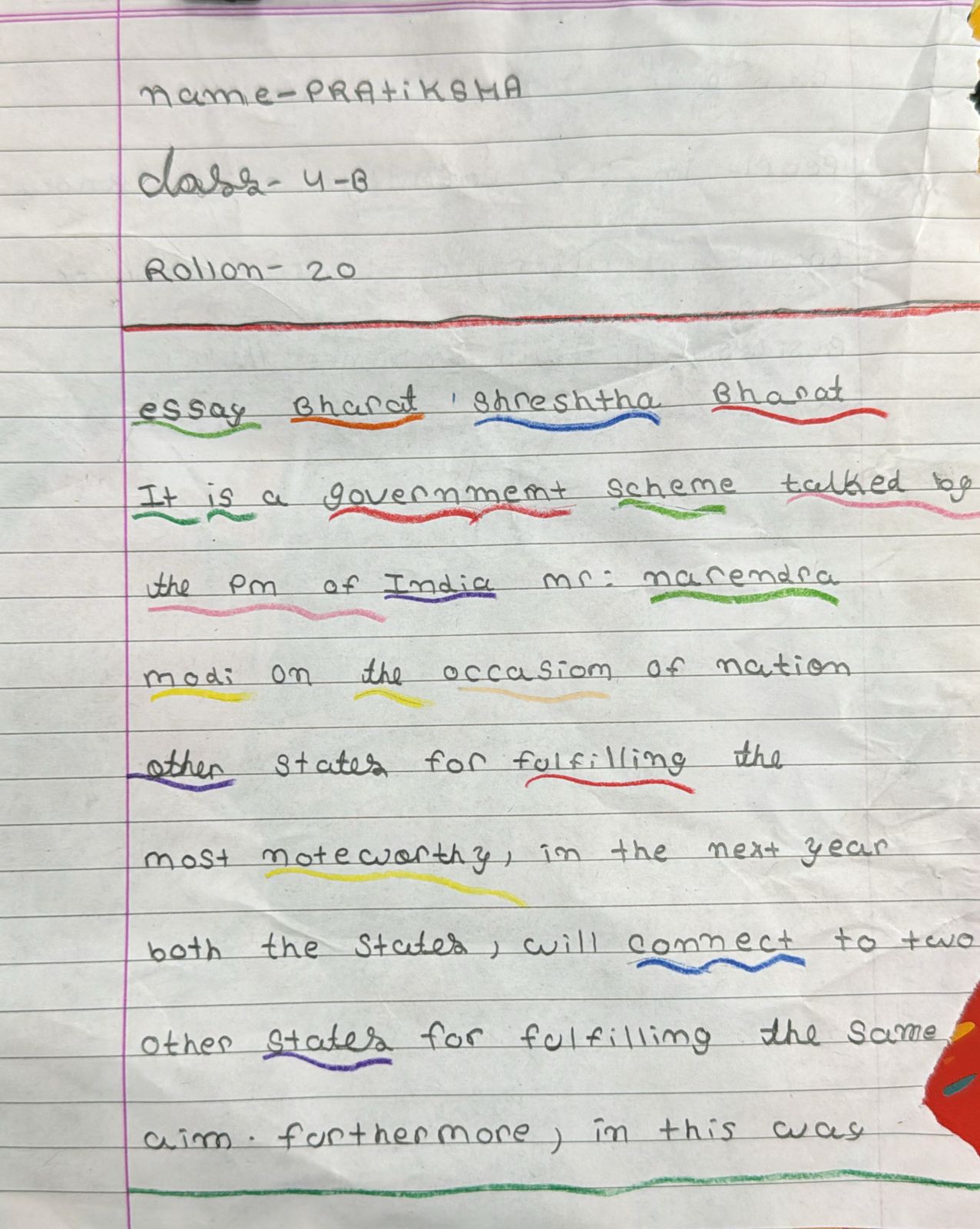 Army public school Ahmedabad cantt name of student pratiksha class 4.b