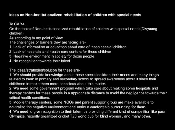Inviting Ideas for Non-Institutionalised Rehabilitation of Divyaang Children
