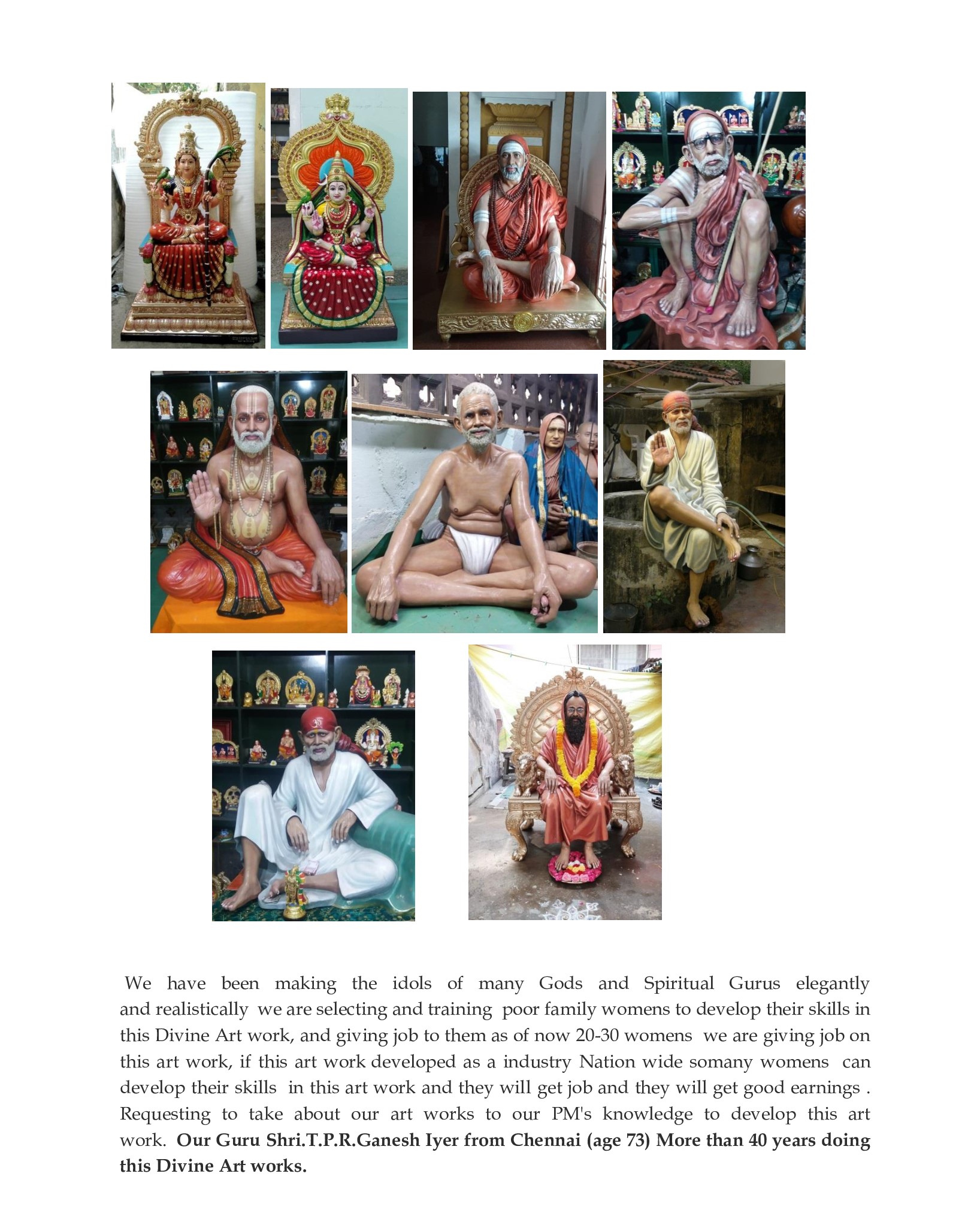 we are doing Divine art work from chennai more than 40 years if this art works helps somany womens to develop their handicraft skills and to get earnings , if this art work developed as a industry Nation wide somany womens will get job oppourtunity details enclosed in attachement Thanking you