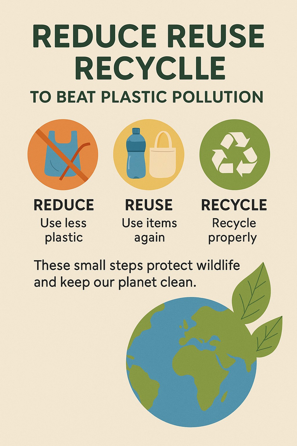 Reuse: This focuses on finding new ways to use items before discarding them. Instead of throwing away plastic containers, they can be repurposed for storage or other uses.