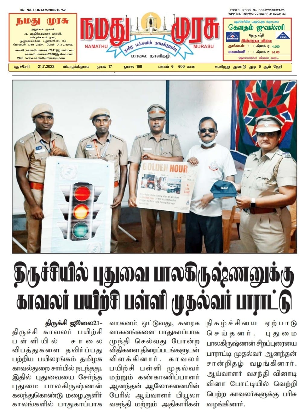 Respected Prime Minister hi, I am from Puducherry , working for road safety since 1991. I AM NOT NGO .DONT GET Govt FUNDS. Nitin Gadkari ji is improving roads & road safety. Suggested to increase policing in highways. It will decrease violations .Regards Pudumai Balakrishnan Resource Person Transport Dept Pondicherry