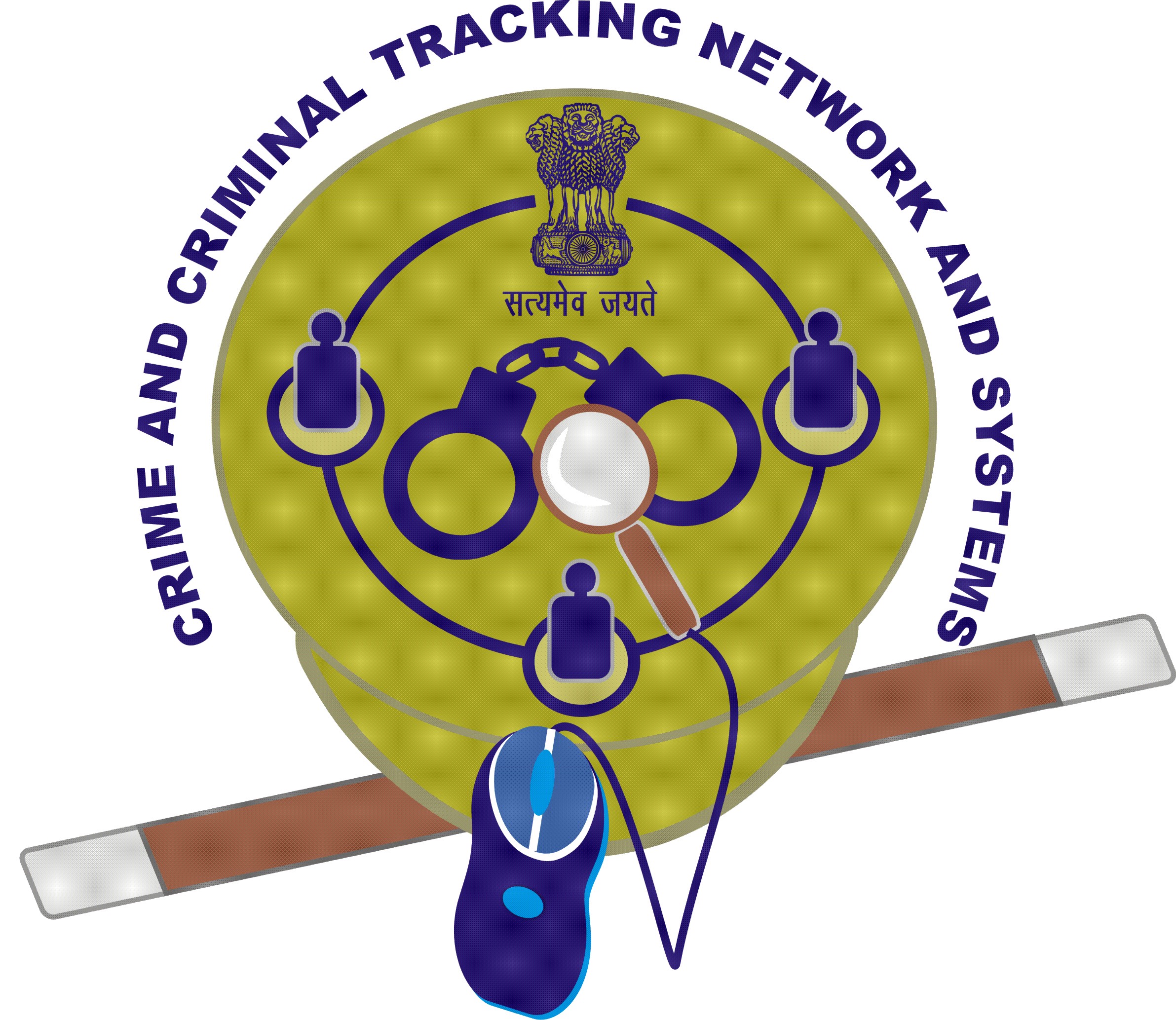 Crime and Criminal Tracking Network and Systems is designed for the security of the nationals hence the logo below includes the following: A KEYHOLE the depicts security. THREE DOTS symbolize the connectivity through internet. A MAGNIFYING GLASS that arrows towards the investigation and tracking. The logo has the initials of Crime and Criminal i.e. C C. The color red is positive portraying strength and vitality. Blue stands for resolving mystery. #MinistryofHomeAffairs,#CCTNS, #MyGov