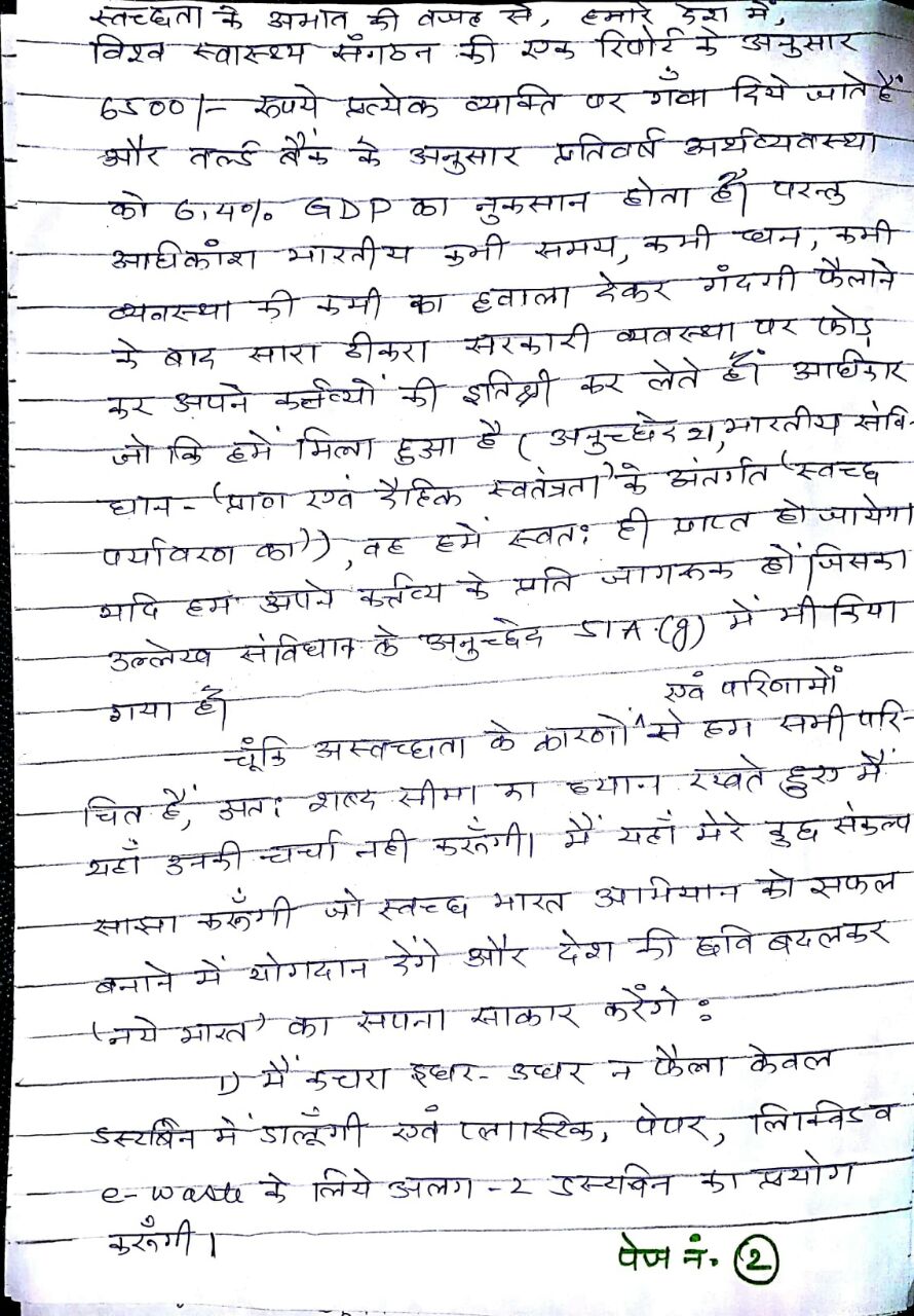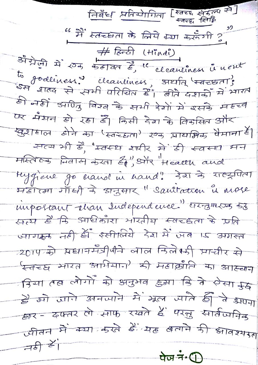विषय: भारत को स्वच्छ बनाने में मेरा योगदान