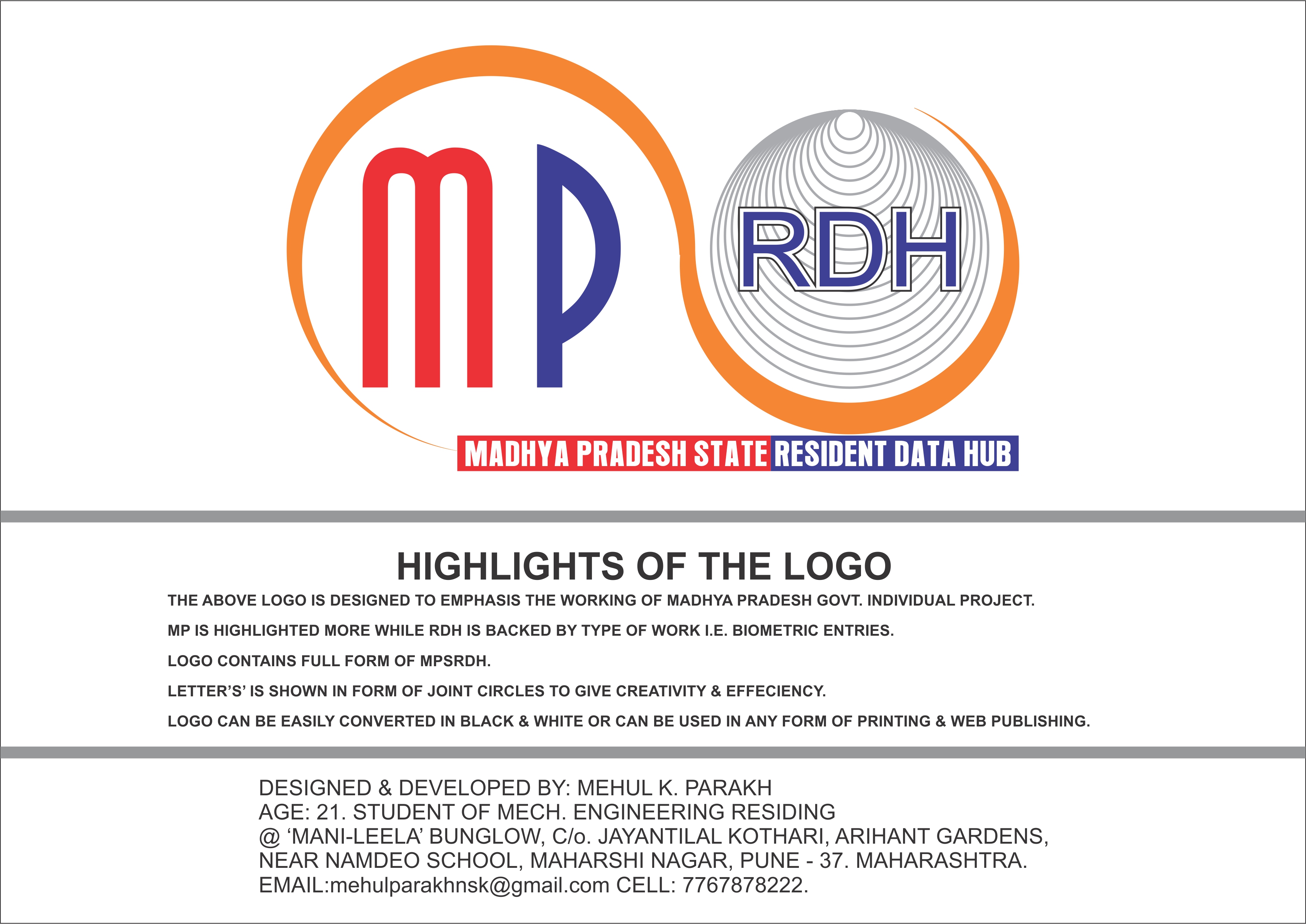 Logo design competition for “Madhya Pradesh State Resident Data Hub” or “MP SRDH” Name : Abhay B. Meshram Mobile No. : 7489389611 Address : House No.634, Sindhiya Nagar, Durg, C.G., Pin-491001